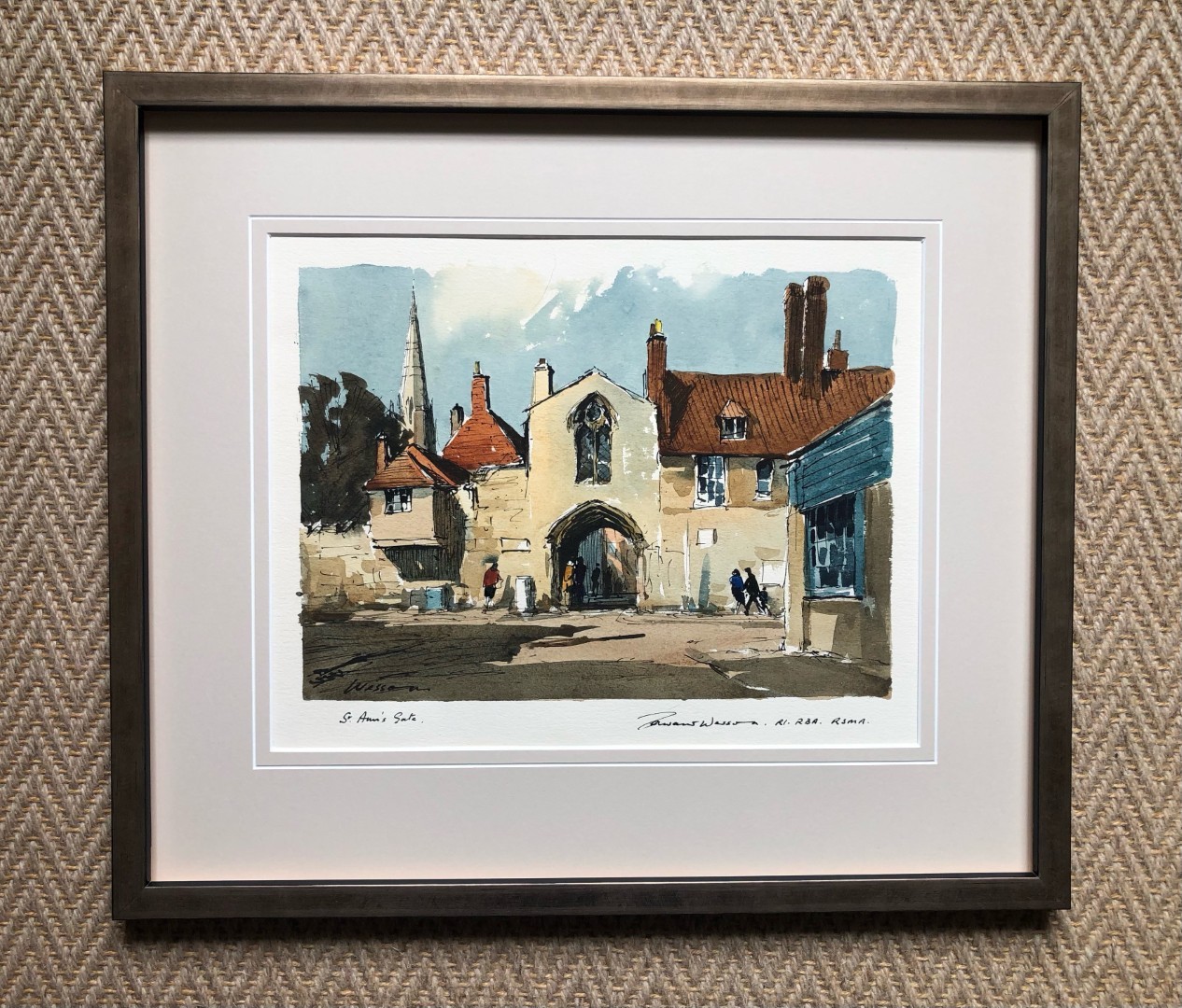 Supplied in a new antique gold frame and double mount. MINT