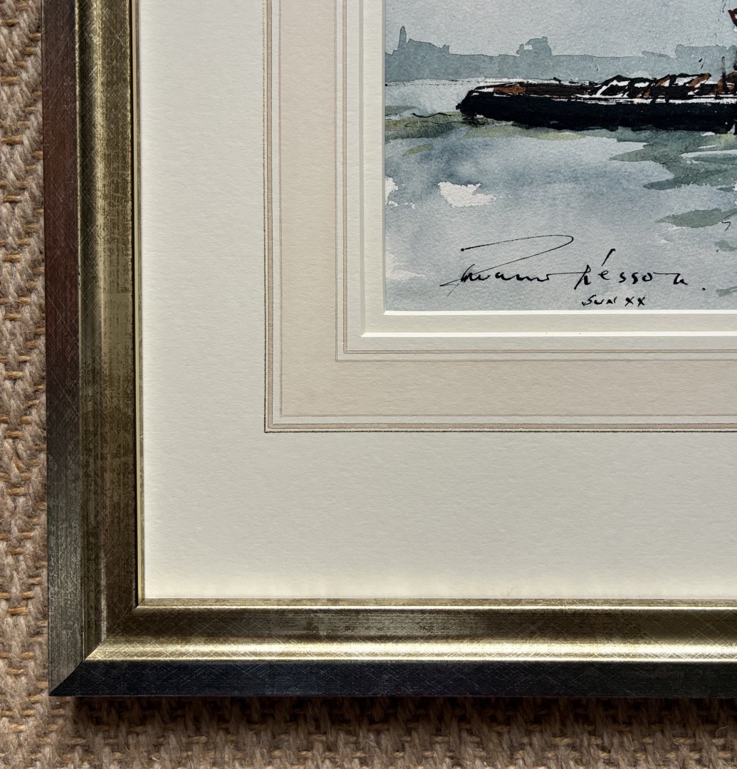 Supplied in the original washlined mount and silver/ gold frame
