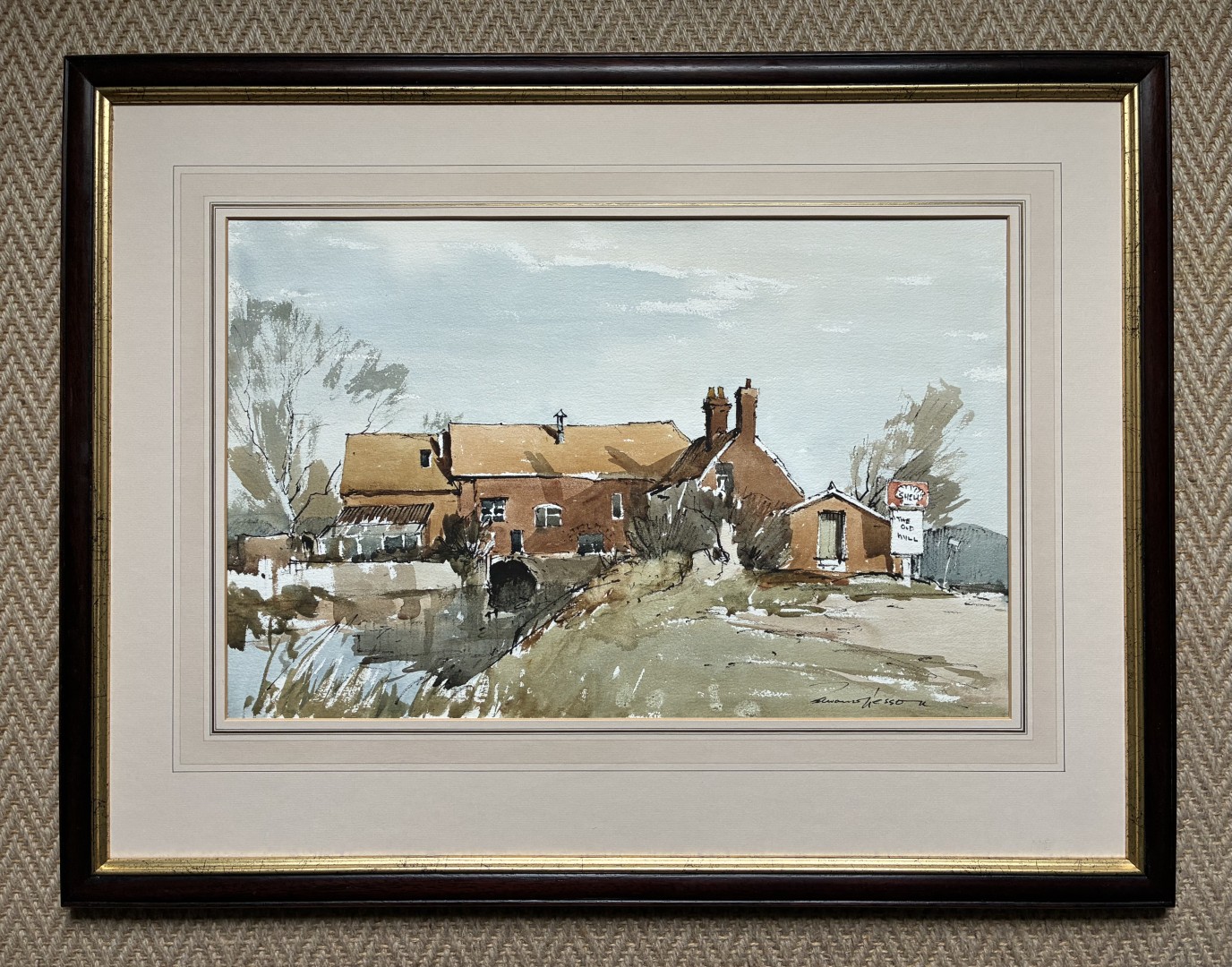 Supplied in the original washlined mount and new wooden /gold frame.